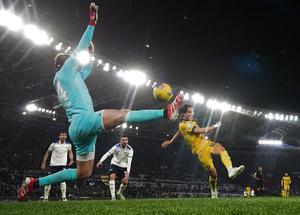 (250311) -- ROMA, 11 marzo, 2025 (Xinhua) -- Imagen del 10 de marzo de 2025 de Florian Thauvin (d), de Udinese, realizando una anotación durante el partido de fútbol de la Serie A entre Lazio y Udinese, en Roma, Italia. (Xinhua/Alberto Lingria) (ah) (vf)