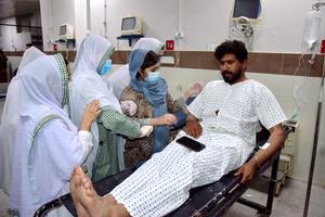 (250313) -- QUETTA, 13 marzo, 2025 (Xinhua) -- Un pasajero herido recibe tratamiento médico en un hospital, en Quetta, en el suroeste de Pakistán, el 13 de marzo de 2025. Veintiún pasajeros, cuatro soldados y 33 terroristas murieron después de que terroristas fuertemente armados atacaron un tren de pasajeros y tomaron a decenas de rehenes en la provincia de Baluchistán, en el suroeste del país, dijo Relaciones Públicas Interservicios (ISPR, por sus siglas en inglés), la división de medios de comunicación del Ejército de Pakistán, en una declaración el miércoles por la noche. (Xinhua/Str) (rtg) (ra) (vf)