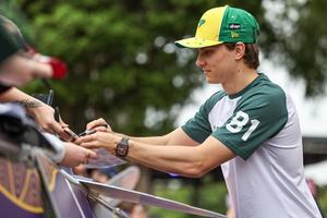 (250313) -- MELBOURNE, 13 marzo, 2025 (Xinhua) -- El piloto australiano de la escudería McLaren, Oscar Piastri, interactúa con aficionados en el Melbourne Walk, previo al Gran Premio de Australia de Fórmula Uno, en Albert Park, en Melbourne, Australia, el 13 de marzo de 2025. (Xinhua/Qian Jun) (rtg) (ra) (ce)