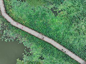 (250313) -- XIONG'AN, 13 marzo, 2025 (Xinhua) -- Vista aérea tomada con un dron el 9 de julio de 2024 de personas visitando un parque con temática de loto en el lago Baiyangdian, en la Nueva Area de Xiong'an, en la provincia de Hebei, en el norte de China. Desde que China anunció sus planes de establecer la Nueva Area de Xiong'an en abril de 2017, ha evolucionado de un proyecto a una ciudad vibrante. El desarrollo de la Nueva Area de Xiong'an, apodada la "ciudad del futuro" de China, ha entrado en una fase en la que debe atribuirse la misma importancia tanto a su construcción en gran escala como a su propósito de liberar a Beijing de funciones no esenciales para su papel como capital nacional. (Xinhua/Mu Yu) (jg) (ah) (vf)