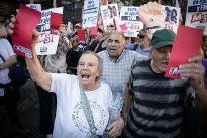 (250320) -- BUENOS AIRES, 20 marzo, 2025 (Xinhua) -- Imagen del 19 de marzo de 2025 de personas gritando consignas durante una manifestación en apoyo a jubilados y pensionados frente al Congreso Nacional, en la ciudad de Buenos Aires, capital de Argentina. Miles de jubilados y pensionados de Argentina se manifestaron el miércoles frente al Congreso, en el centro de Buenos Aires (capital federal), para reclamar una recomposición de sus ingresos. (Xinhua/Martín Zabala) (mz) (jg) (ah) (vf)