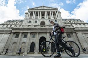 (220414) -- LONDRES, 14 abril, 2022 (Xinhua) -- Imagen del 13 de abril de 2022 de una mujer caminando frente al Banco de Inglaterra, en Londres, Reino Unido. El Indice de Precios al Consumidor de Reino Unido, se incrementó por 7 por ciento en los 12 meses previos a marzo del 2022, subiendo un 6,2 por ciento en febrero, alcanzando un nuevo máximo en 30 años, mostraron el miércoles estadísticas oficiales. (Xinhua/Stephen Ching) (rtg) (ah) (vf)