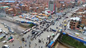 (250319) -- EL ALTO, 19 marzo, 2025 (Xinhua) -- Vista aérea tomada con un dron el 19 de marzo de 2025 de una calle sin transporte urbano debido a un paro de labores de conductores de transporte urbano por el desabasto de combustible y el alza de la canasta familiar, en la ciudad de El Alto, Bolivia. (Xinhua/Javier Mamani) (jm) (ah) (vf)