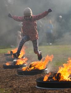 (250319) -- VANCOUVER, 19 marzo, 2025 (Xinhua) -- Imagen del 18 de marzo de 2025 de una niña saltando sobre una hoguera durante un festival del fuego, en el parque Ambleside, en West Vancouver, Columbia Británica, Canadá. La comunidad iraní local participó el martes en el festival del fuego para celebrar el próximo Nowruz, el Año Nuevo iraní, que este año se celebra el 20 de marzo. (Xinhua/Liang Sen) (ah) (ce)