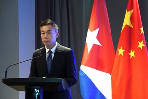 (250320) -- LA HABANA, 20 marzo, 2025 (Xinhua) -- Imagen del 19 de marzo de 2025 del embajador de China en Cuba, Hua Xin, pronunciando un discurso durante el seminario "Diálogos globales de China en la primavera: China y el Mundo, oportunidades compartidas", en La Habana, capital de Cuba. Expertos cubanos analizaron el impacto de las políticas de desarrollo chinas tras los resultados de las recientes sesiones de la XIV Asamblea Popular Nacional (APN) y del XIV Comité Nacional de la Conferencia Consultiva Política del Pueblo Chino (CCPPCh). (Xinhua/Joaquín Hernández) (jh) (ah) (vf)