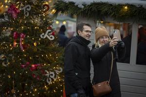 (241209) -- HELSINKI, 9 diciembre, 2024 (Xinhua) -- Imagen del 8 de diciembre de 2024 de personas tomándose fotografías en el Mercado Navideño en la Plaza del Senado, en Helsinki, Finlandia. (Xinhua/Matti Matikainen) (oa) (ah) (ce)