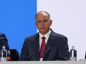 (250319) -- COSTA NAVARINO, 19 marzo, 2025 (Xinhua) -- El candidato a la presidencia del Comité Olímpico Internacional (COI), príncipe Feisal Al-Hussein, asiste a la 144ª sesión del COI, en Costa Navarino, Atenas, Grecia, el 19 de marzo de 2025. (Xinhua/Cao Can) (jg) (da) (ce)