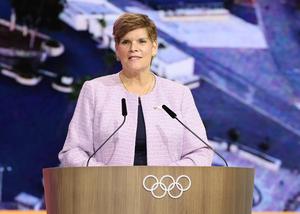 (250320) -- COSTA NAVARINO, 20 marzo, 2025 (Xinhua) -- Nicole Hoevertsz, vicepresidenta del Comité Olímpico Internacional (COI) y presidenta de la Comisión de Coordinación de los Juegos Olímpicos de Los Angeles 2028, habla durante el segundo día de la 144ª sesión del Comité Olímpico Internacional (COI), en Costa Navarino, Grecia, el 20 de marzo de 2025. (Xinhua/Cao Can) (da) (ra) (vf)