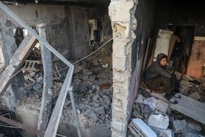 (250319) -- GAZA, 19 marzo, 2025 (Xinhua) -- Un joven se sienta entre los escombros de una casa destruida en un bombardeo israelí, en el vecindario de Sabra, en el sur de la Ciudad de Gaza, el 19 de marzo de 2025. Al menos 25 palestinos murieron y decenas más resultaron heridos el miércoles en el bombardeo israelí contra una vivienda en el vecindario de Sabra, en la Ciudad de Gaza, dijeron fuentes palestinas. (Xinhua/Rizek Abdeljawad) (ah) (vf)