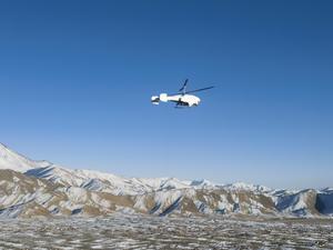 (250321) -- GUANGZHOU, 21 marzo, 2025 (Xinhua) -- Imagen de octubre de 2022 de un helicóptero coaxial no tripulado TD550 en un vuelo de prueba en la meseta, en Hetian, en la región autónoma uygur de Xinjiang, en el noroeste de China. El sistema de helicóptero coaxial no tripulado TD550 ha recibido su certificado de tipo de la Administración de Aviación Civil de China (CAAC, por sus siglas en inglés), el primero en su tipo en haber obtenido dicha certificación en China, dijo su desarrollador el viernes. (Xinhua) (rtg) (ra) (vf)
