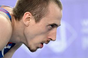 (250321) -- NANJING, 21 marzo, 2025 (Xinhua) -- Bosko Kijanovic, de Serbia, reacciona al término de la primera ronda de 400m masculinos durante el Campeonato Mundial de Atletismo en Pista Cubierta 2025, en Nanjing, en la provincia de Jiangsu, en el este de China, el 21 de marzo de 2025. (Xinhua/Song Yanhua) (rtg) (ra) (vf)