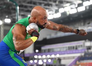 (250322) -- NANJING, 22 marzo, 2025 (Xinhua) -- Pedro de Oliveira, de Brasil, compite durante el lanzamiento de peso de heptatlón masculino en el Campeonato Mundial de Atletismo en Pista Cubierta 2025, en Nanjing, en la provincia de Jiangsu, en el este de China, el 22 de marzo de 2025. (Xinhua/Song Yanhua) (oa) (da)