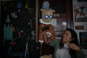 (250322) -- BOGOTA, 22 marzo, 2025 (Xinhua) -- Imagen del 21 de marzo de 2025 de Hans Lancheros, antropóloga, titiritera y cofundadora de la agrupación Croché Títeres, sosteniendo un títere en el marco de la celebración del Día Mundial de la Marioneta y el Títere, en la ciudad de Bogotá, Colombia. (Xinhua/Andrés Moreno) (am) (oa) (da)