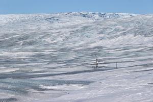 (250322) -- KANGERLUSSUAQ, 22 marzo, 2025 (Xinhua) -- Imagen del 21 de marzo de 2025 de un dispositivo de investigación científica colocado sobre la capa de hielo cerca de Kangerlussuaq, Groenlandia, un territorio autónomo de Dinamarca. (Xinhua/Zhao Dingzhe) (oa) (da)