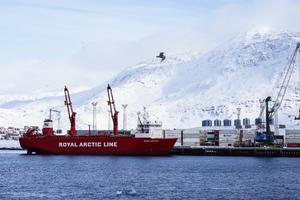 (250321) -- NUUK, 21 marzo, 2025 (Xinhua) -- Imagen del 20 de marzo de 2025 de un barco de carga atracando en el Puerto de Nuuk, en Nuuk, Groenlandia, un territorio autónomo de Dinamarca. (Xinhua/Peng Ziyang) (rtg) (ra) (ce)