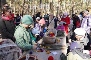 (250323) -- RIGA, 23 marzo, 2025 (Xinhua) -- Imagen del 22 de marzo de 2025 de personas elaborando artesanías durante las celebraciones para recibir el equinoccio de primavera en el Museo Etnográfico de Letonia, en Riga, Letonia. (Xinhua/Edijs Palens) (rtg) (ah)