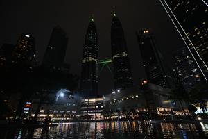 (250322) -- KUALA LUMPUR, 22 marzo, 2025 (Xinhua) -- Imagen del 22 de marzo de 2025 de las Torres Gemelas Petronas durante el evento de la Hora del Planeta, en Kuala Lumpur, Malasia. (Xinhua/Chong Voon Chung) (oa) (da)