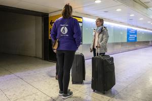(250321) -- LONDRES, 21 marzo, 2025 (Xinhua) -- Una empleada intenta ayudar a pasajeros en el aeropuerto de Heathrow, en Londres, Reino Unido, el 21 de marzo de 2025. El aeropuerto de Heathrow, en Londres, permanecerá cerrado hasta la medianoche del viernes debido a un "significativo apagón" provocado por el incendio de una subestación eléctrica cercana, declaró un portavoz.. (Xinhua/Stephen Chung) (oa) (ra) (ce)