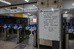 (250321) -- LONDRES, 21 marzo, 2025 (Xinhua) -- Un tablero de anuncios sobre el cierre del aeropuerto de Heathrow es visto en el aeropuerto de Heathrow, en Londres, Reino Unido, el 21 de marzo de 2025. El aeropuerto de Heathrow, en Londres, permanecerá cerrado hasta la medianoche del viernes debido a un "significativo apagón" provocado por el incendio de una subestación eléctrica cercana, declaró un portavoz.. (Xinhua/Stephen Chung) (oa) (ra) (ce)
