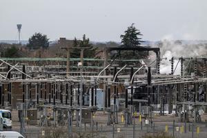 (250321) -- LONDRES, 21 marzo, 2025 (Xinhua) -- Imagen del 21 de marzo de 2025 de una subestación eléctrica que sufrió un incendio cerca del Aeropuerto de Heathrow, en Londres, Reino Unido. El aeropuerto de Heathrow, en Londres, permanecerá cerrado hasta la medianoche del viernes debido a un "significativo apagón" provocado por el incendio de una subestación eléctrica cercana, declaró un portavoz. El apagón ha afectado a todo el aeropuerto y no hay plazos confirmados para restaurar la electricidad. "Para mantener la seguridad de nuestros pasajeros y trabajadores, no tenemos otra opción que cerrar Heathrow hasta las 23:59 GMT del 21 de marzo", añadió el portavoz. (Xinhua/Stephen Chung) (rtg) (ra) (vf)