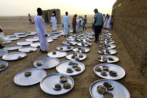 (250321) -- DONGOLA, 21 marzo, 2025 (Xinhua) -- Imagen del 20 de marzo de 2025 de personas preparando alimentos para el Iftar callejero de Ramadán, en la aldea de Wad Nimair, en el sur de Dongola, Sudán. (Xinhua/Magdi Abdalla) (jg) (da) (vf)