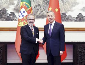 (250325) -- BEIJING, 25 marzo, 2025 (Xinhua) -- El ministro de Relaciones Exteriores chino, Wang Yi, también miembro del Buró Político del Comité Central del Partido Comunista de China, celebra el segundo diálogo estratégico China-Portugal a nivel de ministros de Relaciones Exteriores con el ministro de Estado y Asuntos Exteriores de Portugal, Paulo Rangel, en Beijing, capital de China, el 25 de marzo de 2025. (Xinhua/Liu Weibing) (jg) (ra) (ce)