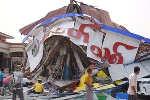 (250328) -- NAY PYI TAW, 28 marzo, 2025 (Xinhua) -- Imagen del 28 de marzo de 2025 de un edificio dañado después de un terremoto, en Nay Pyi Taw, Myanmar. Un terremoto de magnitud 7,7 sacudió Myanmar a las 14:20 horas del viernes (hora de Beijing), informó el Centro de Redes Sismológicas de China (CENC, siglas en inglés). (Xinhua) (rtg) (ra) (vf)