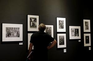 (250401) -- LIMA, 1 abril, 2025 (Xinhua) -- Un hombre observa fotografías de la exposición "ELLAS. La mujer en la fotografía del sur andino 1895-1945" en el Centro Cultural Inca Garcilaso del Ministerio de Relaciones Exteriores, en Lima, Perú, el 1 de abril de 2025. (Xinhua/Mariana Bazo) (mb) (oa) (ah) (vf)