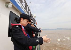 (250403) -- BEIJING, 3 abril, 2025 (Xinhua) -- Oficiales de policía rinden tributo a los mártires en un barco de inspección, en Zhoushan, en la provincia de Zhejiang, en el este de China, el 3 de abril de 2025. Personas de todo el país asistieron a diversas actividades para rendir tributo a los mártires previo al Festival Qingming, que cae el 4 de abril de este año. (Xinhua/Zou Xunyong) (rtg) (ra) (ce)