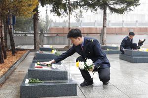 (250403) -- BEIJING, 3 abril, 2025 (Xinhua) -- Trabajadores del ferrocarril rinden tributo a los mártires en un cementerio de mártires, en Suifenhe, en la provincia de Heilongjiang, en el noreste de China, el 3 de abril de 2025. Personas de todo el país asistieron a diversas actividades para rendir tributo a los mártires previo al Festival Qingming, que cae el 4 de abril de este año. (Xinhua/Qu Yiwei) (rtg) (ra) (ce)