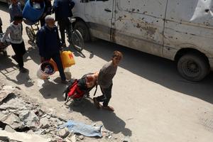 (250403) -- GAZA, 3 abril, 2025 (Xinhua) -- Palestinos que huyen del barrio de Shuja'iyya son vistos en la Ciudad de Gaza, el 3 de abril de 2025. El Ejército israelí pidió a los residentes de algunas áreas del este de la Ciudad de Gaza evacuar y dirigirse a refugios en el oeste de la ciudad. En un comunicado, el portavoz militar israelí, Avichay Adraee, emitió una "advertencia seria y urgente" a los residentes del área de Shuja'iyya y otros barrios. (Xinhua/Rizek Abdeljawad) (jg) (ah) (ce)