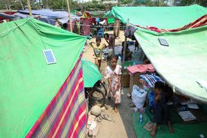 (250403) -- MANDALAY, 3 abril, 2025 (Xinhua) -- Niños son vistos en un refugio temporal para personas afectadas por el terremoto, en Mandalay, Myanmar, el 3 de abril de 2025. El número de muertos a causa de un terremoto de magnitud 7,9 en la escala de Richter en Myanmar aumentó a 3.145, con 4.589 heridos y 221 desaparecidos, informó el jueves la Radio y Televisión de Myanmar. (Xinhua/Myo Kyaw Soe) (rtg) (ra) (vf)