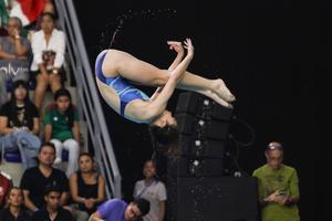 (250407) -- GUADALAJARA, 7 abril, 2025 (Xinhua) -- Imagen del 6 de abril de 2025 de Chen Jia, de China, compitiendo durante de la final de trampolín de 3 metros femeninos en la Copa Mundial de Clavados, en Guadalajara, estado de Jalisco, México. (Xinhua/Diana Márquez) (oa) (ah) (ce)