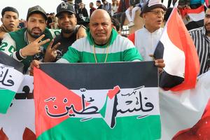 (250408) -- SINAI DEL NORTE, 8 abril, 2025 (Xinhua) -- Personas participan en una manifestación de apoyo a Palestina, cerca del Aeropuerto de El-Arish, en la gobernación de Sinaí del Norte, Egipto, el 8 de abril de 2025. Miles de egipcios de varias provincias se concentraron el martes cerca del Aeropuerto de El-Arish para expresar su apoyo a la causa palestina y rechazar cualquier intento de desplazar a los palestinos de sus tierras. (Xinhua/Mohamed Asad) (oa) (ah) (ce)