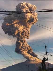 (250408) -- ISLA DE NEGROS, 8 abril, 2025 (Xinhua) -- El monte Kanlaon arroja material volcánico, en la isla de Negros, Filipinas, el 8 de abril de 2025. Una erupción explosiva sacudió el monte Kanlaon en el centro de Filipinas el martes por la mañana, dijo el Instituto Filipino de Vulcanología y Sismología. En un aviso, el instituto dijo que la erupción "está produciendo una columna voluminosa y curvada de aproximadamente 4.000 metros de altura que se desplaza hacia el suroeste". (Xinhua/Unidad de Gobierno Local de la Ciudad de Canlaon) (oa) (ah) (vf)