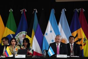 (250408) -- TEGUCIGALPA, 8 abril, 2025 (Xinhua) -- El canciller hondureño, Enrique Reina (d-frente), y la canciller colombiana, Laura Sarabia (i-frente), participan en la Reunión de Cancilleres de la IX Cumbre de la Comunidad de Estados Latinoamericanos y Caribeños (CELAC), en Tegucigalpa, capital de Honduras, el 8 de abril de 2025. (Xinhua/David de la Paz) (dp) (jg) (ra) (vf)
