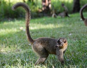 (250408) -- ANTANANARIVO, 8 abril, 2025 (Xinhua) -- Imagen del 29 de marzo de 2025 de un lémur marrón común visto en el Parque Nacional de Andasibe-Mantadia, en Madagascar. Madagascar, un país insular del Océano Indico, cuenta con una biodiversidad única debido a su aislamiento geográfico, siendo los lémures el grupo más emblemático. Según la Unión Internacional para la Conservación de la Naturaleza (IUCN, por sus siglas en inglés), se han identificado más de 100 especies de lémures en la isla. Algunas especies de lémures han sido catalogadas en peligro crítico en la Lista Roja de Especies Amenazadas de la IUCN debido a la destrucción de su hábitat y a la caza ilegal en los últimos años. (Xinhua/Li Yahui) (oa) (ah) (ce)