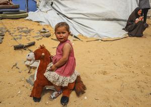 (250408) -- GAZA, 8 abril, 2025 (Xinhua) -- Imagen del 7 de abril de 2025 de una niña palestina desplazada vista en un refugio temporal, en la Ciudad de Gaza. (Xinhua/Mahmoud Zaki) (oa) (ah) (vf)
