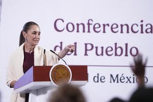 (250408) -- CIUDAD DE MEXICO, 8 abril, 2025 (Xinhua) -- Imagen cedida por la Presidencia de México de la presidenta mexicana, Claudia Sheinbaum, reaccionando durante su conferencia de prensa matutina en Palacio Nacional, en la Ciudad de México, capital de México, el 8 de abril de 2025. Sheinbaum reiteró el martes su desacuerdo con cualquier tipo de "intervención" e "injerencismo" por parte de Estados Unidos, que se presume buscaría utilizar drones en la frontera común para atacar a los cárteles de la droga mexicanos. (Xinhua/Presidencia de México) (oa) (ah) (vf)
