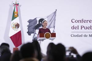 (250408) -- CIUDAD DE MEXICO, 8 abril, 2025 (Xinhua) -- Imagen cedida por la Presidencia de México de la presidenta mexicana, Claudia Sheinbaum, sonriendo durante su conferencia de prensa matutina en Palacio Nacional, en la Ciudad de México, capital de México, el 8 de abril de 2025. Sheinbaum reiteró el martes su desacuerdo con cualquier tipo de "intervención" e "injerencismo" por parte de Estados Unidos, que se presume buscaría utilizar drones en la frontera común para atacar a los cárteles de la droga mexicanos. (Xinhua/Presidencia de México) (oa) (ah) (vf)