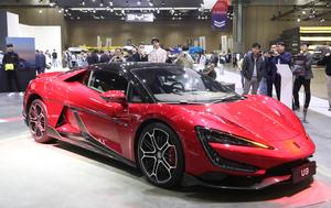 (250408) -- GOYANG, 8 abril, 2025 (Xinhua) -- Visitantes observan un automóvil deportivo en el estand del fabricante chino de vehículos eléctricos BYD durante el Salón de la Movilidad de Seúl 2025, en la ciudad de Goyang, en la provincia de Gyeonggi, República de Corea, el 8 de abril de 2025. El Salón de la Movilidad de Seúl 2025 se lleva a cabo aquí del 4 al 13 de abril. (Xinhua/Yao Qilin) (jg) (ra) (ce)