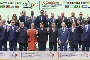 (250409) -- TEGUCIGALPA, 9 abril, 2025 (Xinhua) -- Imagen cedida por la Presidencia de Colombia de jefas y jefes de Estado y de Gobierno posando para la fotografía oficial de la IX Cumbre de Jefas, Jefes de Estado y de Gobierno de la Comunidad de Estados Latinoamericanos y Caribeños (CELAC), en Tegucigalpa, capital de Honduras, el 9 de abril de 2025. La IX Cumbre de Jefas, Jefes de Estado y de Gobierno de la CELAC inició el miércoles en la capital de Honduras, Tegucigalpa, con la presencia de más de una decena de mandatarios de la región. (Xinhua/Joel González/Presidencia de Colombia) (ah) (ra) (ce)