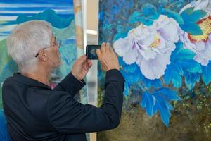 (250410) -- GOIANIA, 10 abril, 2025 (Xinhua) -- Imagen del 9 de abril de 2025 de un visitante tomando fotografías de una pintura china durante un evento cultural chino, en Goiania, estado de Goiás, Brasil. Un evento sobre la cultura tradicional china fue inaugurado el miércoles en la Asamblea Legislativa del Estado de Goiás, atrayendo a numerosos visitantes locales. (Xinhua/Wang Tiancong) (jg) (ah) (ce)