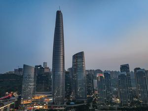 (250410) -- CHONGQING, 10 abril, 2025 (Xinhua) -- Vista aérea tomada con un dron del 9 de abril de 2025 de una vista exterior del centro internacional tierra-mar, en la municipalidad de Chongqing, en el suroeste de China. La construcción del muro cortina de fachada del centro internacional tierra-mar, el edificio más alto en construcción en Chongqing, finalizó oficialmente el miércoles. Ubicado en el distrito de Yuzhong, el rascacielos de 458 metros de altura tiene una superficie de muro cortina de aproximadamente 100.000 metros cuadrados y utiliza más de 18.000 placas de vidrio. (Xinhua/Wang Quanchao) (da) (ra) (vf)