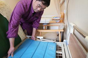 (250410) -- WUXI, 10 abril, 2025 (Xinhua) -- Imagen del 8 de abril de 2025 de un trabajador colocando un colchón de monitoreo de signos vitales, que puede monitorear la respiración y el ritmo cardiaco de las personas mayores y mostrar datos en tiempo real, en una casa de retiro, en el distrito de Binghu de Wuxi, en la provincia de Jiangsu, en el este de China. En los últimos años, la provincia de Jiangsu ha promovido activamente el desarrollo de alta calidad del Internet de las cosas, esforzándose por construir un centro de innovación industrial con influencia global. (Xinhua/Liu Wenhui) (da) (ra) (ce)