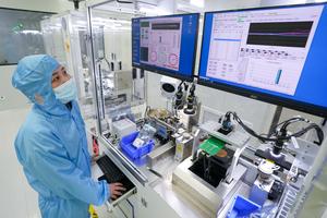 (250410) -- WUXI, 10 abril, 2025 (Xinhua) -- Imagen del 31 de marzo de 2025 de una trabajadora operando en un taller en SinoVision SensTech, en Wuxi, en la provincia de Jiangsu, en el este de China. En los últimos años, la provincia de Jiangsu ha promovido activamente el desarrollo de alta calidad del Internet de las cosas, esforzándose por construir un centro de innovación industrial con influencia global. (Xinhua/Li Bo) (da) (ra) (ce)