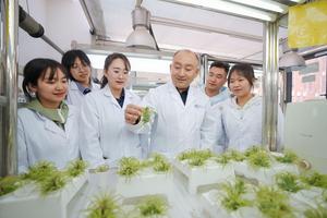 (250410) -- TIANJIN, 10 abril, 2025 (Xinhua) -- Imagen del 9 de abril de 2025 de investigadores de la Facultad de Ciencias Ambientales e Ingeniería de la Universidad Nankai realizando un experimento de exposición a la simulación de plantas en la Universidad de Nankai, en Tianjin, en el norte de China. Un estudio conjunto dirigido por científicos chinos ha demostrado que las hojas de las plantas pueden absorber y acumular microplásticos transportados por el aire, lo que revela una vía directa de entrada de estos contaminantes en la cadena alimentaria y el organismo humano. (Xinhua/Universidad de Nankai) (jg) (ah) (vf)