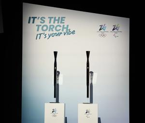 (250415) -- MILAN, 15 abril, 2025 (Xinhua) -- Imagen del 14 de abril de 2025 de las antorchas de los Juegos Olímpicos y Paralímpicos de Invierno Milano Cortina 2026 vistas durante la ceremonia de develación, en Milán, Italia. (Xinhua/Li Jing) (oa) (ah) (vf)