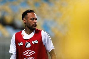 (250414) -- RIO DE JANEIRO, 14 abril, 2025 (Xinhua) -- Imagen del 13 de abril de 2025 del jugador Neymar Jr, de Santos, realizando ejercicios de calentamiento durante el partido correspondiente a la jornada 3 del Campeonato Brasileño Serie A, ante Fluminense, celebrado en el Estadio Maracaná, en Río de Janeiro, Brasil. (Xinhua/Claudia Martini) (cm) (rtg) (ah) (vf)
