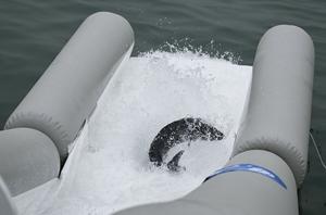 (250412) -- YICHANG, 12 abril, 2025 (Xinhua) -- Un esturión chino se desliza hacia el río Yangtse a través de un canal de liberación, en la ciudad de Yichang, en la provincia de Hubei, en el centro de China, el 12 de abril de 2025. Más de 20.000 esturiones chinos de segunda generación fueron liberados en el río Yangtse durante una actividad de liberación aquí el sábado. (Xinhua/Du Zixuan) (oa) (da)